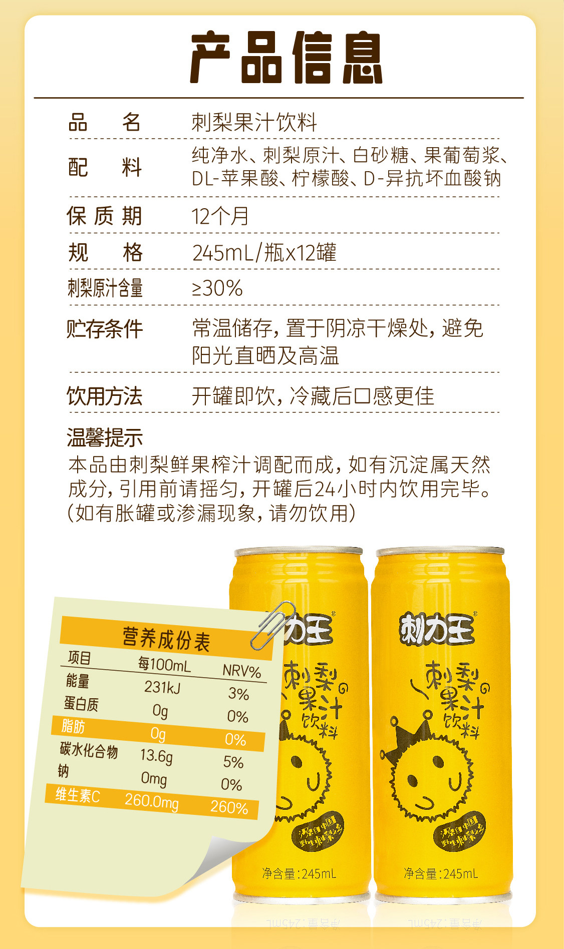 刺力王刺梨汁饮料整箱高维c贵州特产网红果汁饮品245mL*12罐整箱