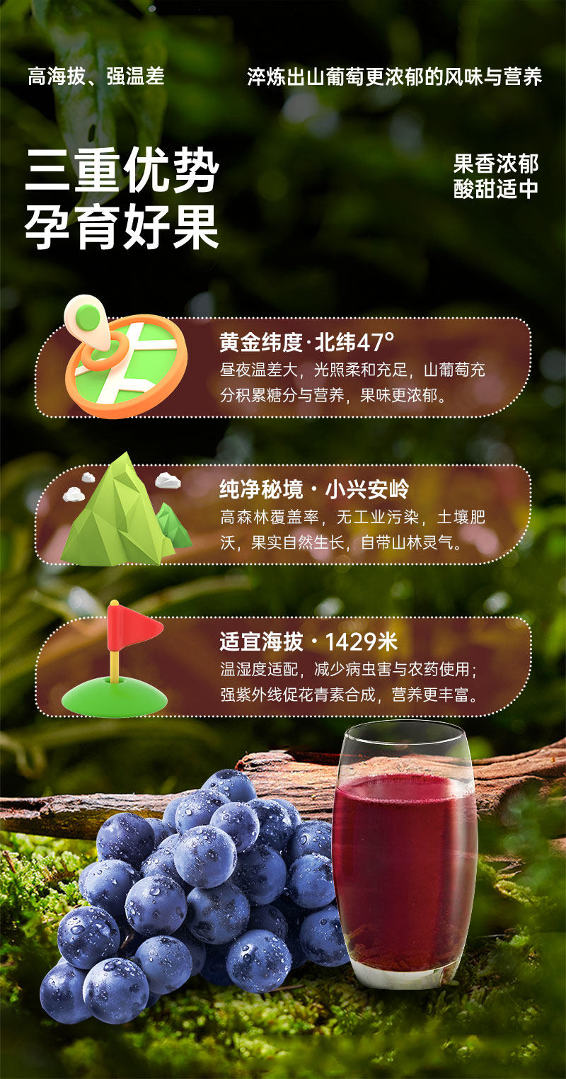 探味寒地小兴安岭山葡萄原汁NFC100%...