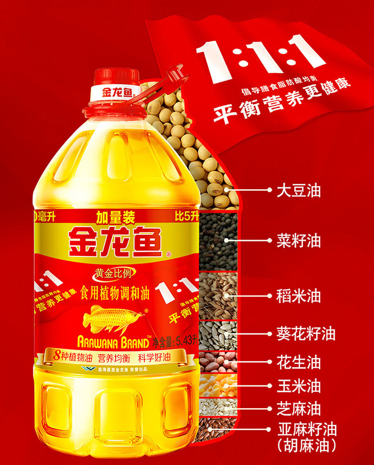 金龙鱼黄金比例1比1调和油食用油5.43...