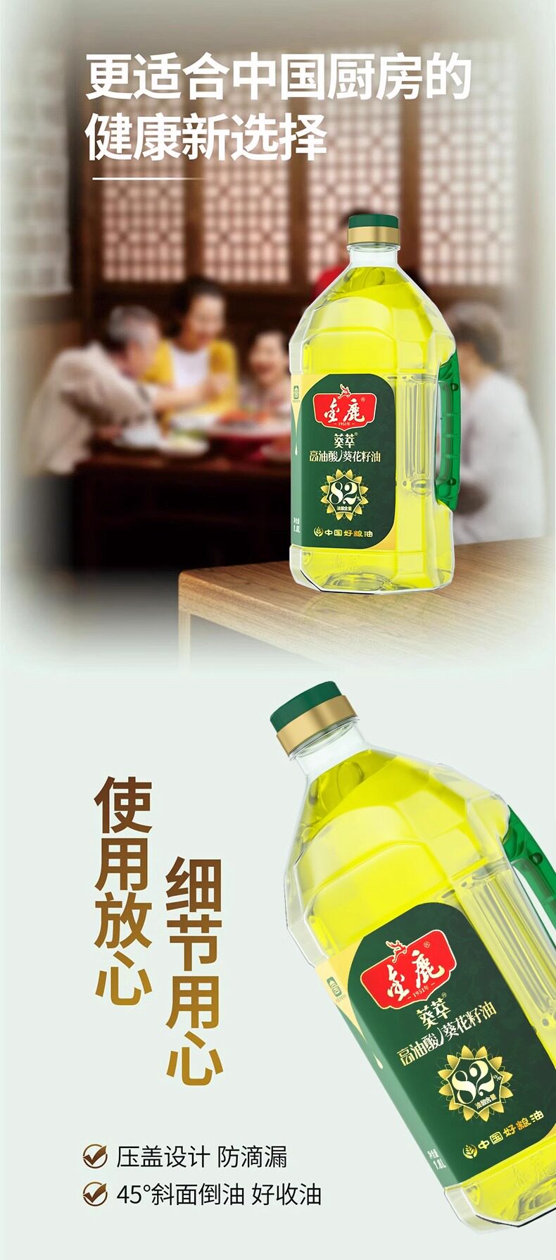 金鹿82%高油酸葵花籽油2.5L/5L压榨一级中国好粮油植物酸油食用