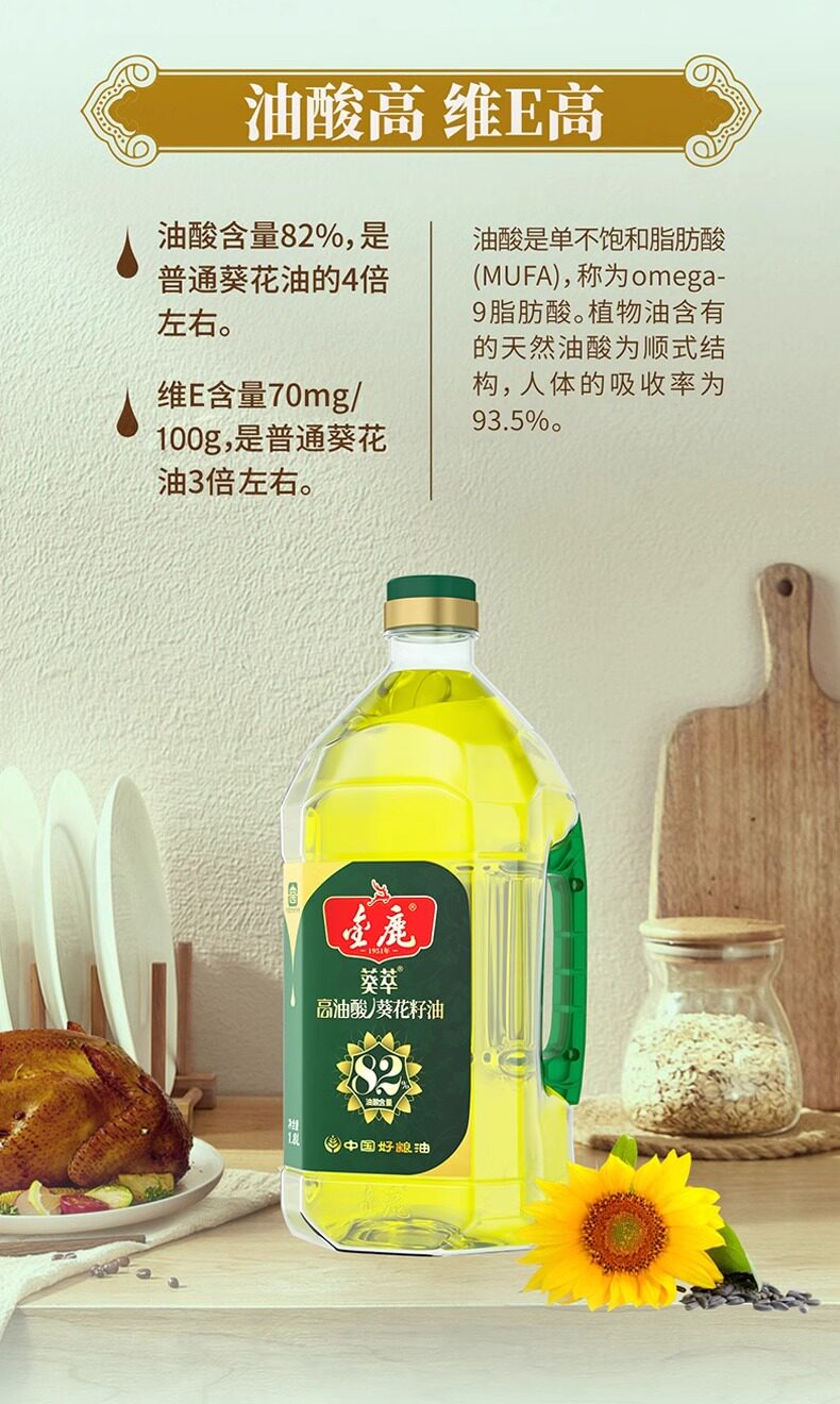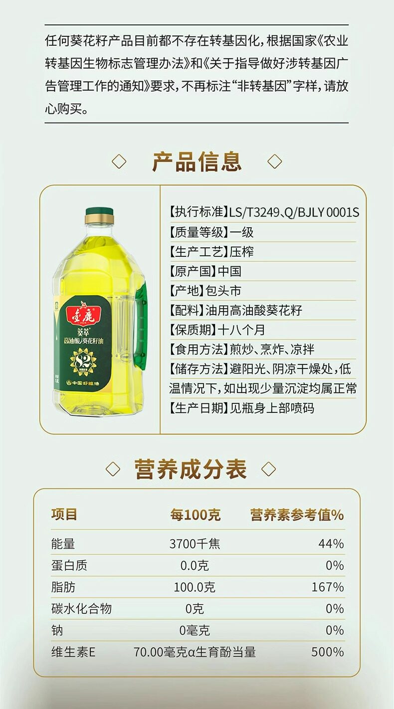 金鹿82%高油酸葵花籽油2.5L/5L压榨一...